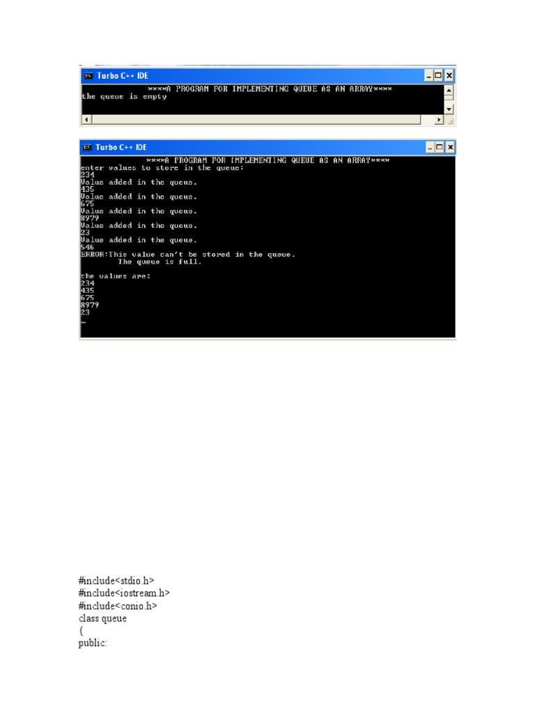 cout<<" ****A PROGRAM FOR IMPLEMENTING QUEUE AS AN