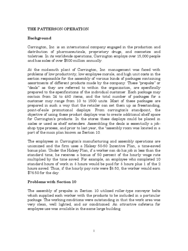 At the mid-south plant of Carrington, Inc. management was faced with