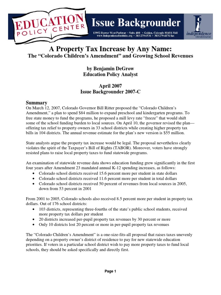 A Property Tax Increase by Any Name: The "Colorado Children's Amendment" and Growing School Revenues