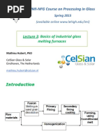 Batch materials are fed into the furnace. Full melting is achieved at around 1 600°C.