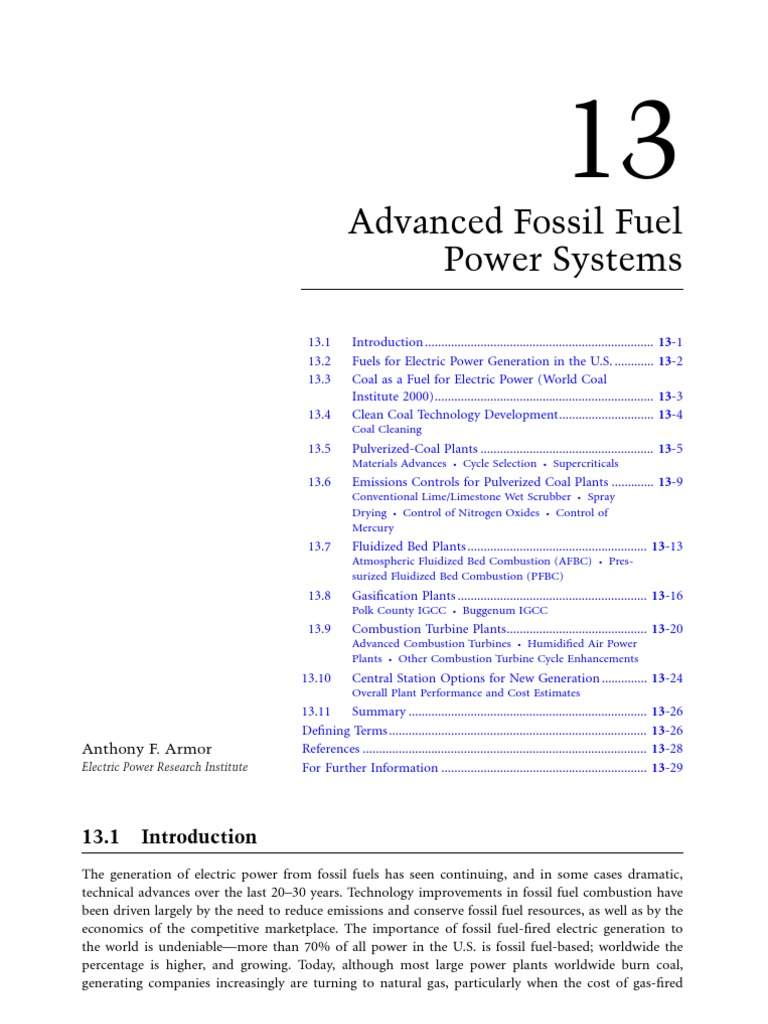 13.3 Coal as a Fuel for Electric Power (World Coal Institute 2000)