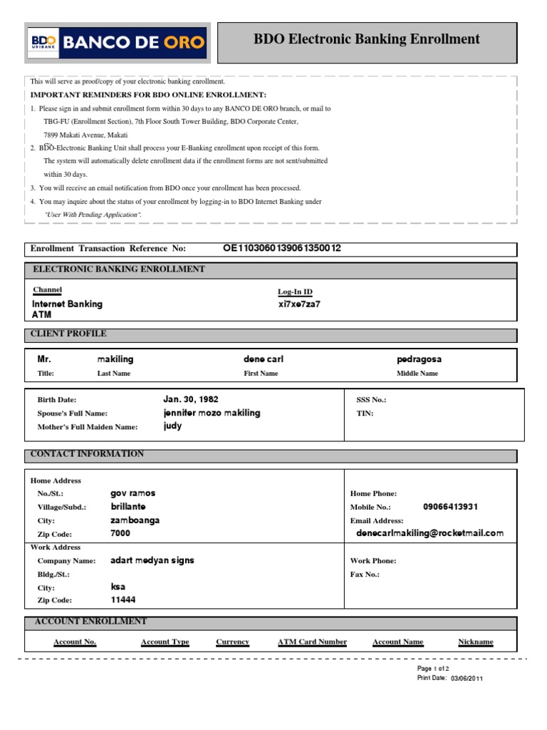 BDO Electronic Banking Enrollment