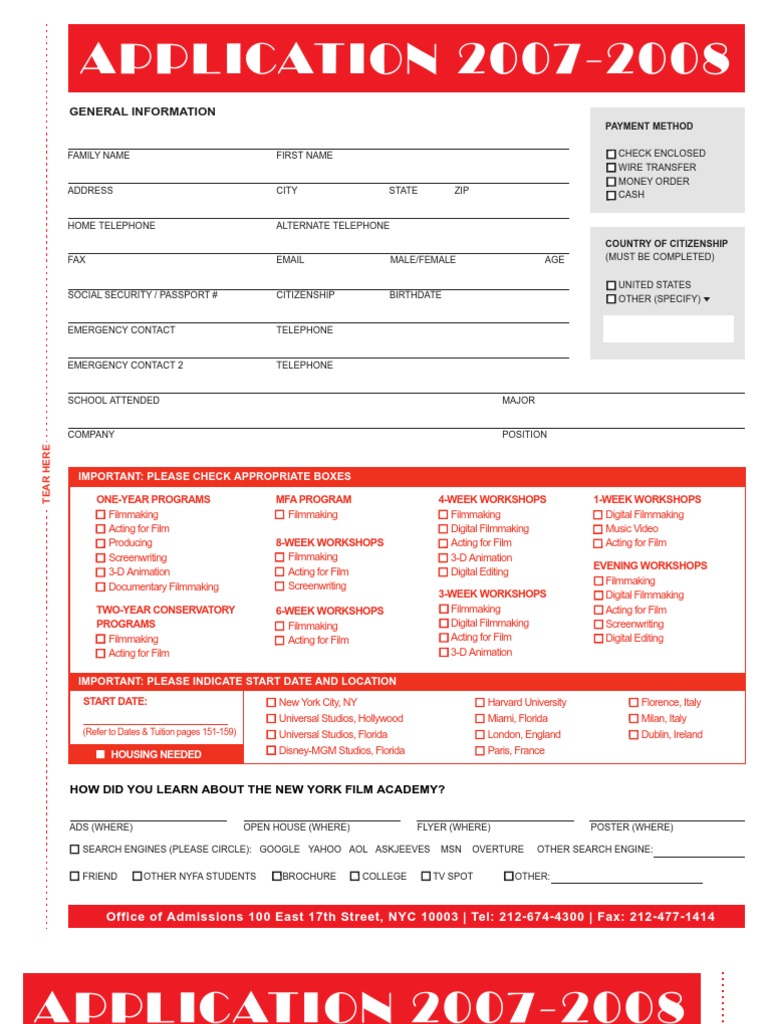 Please make your check or money order, in US dollars, payable to: THE NEW YORK FILM ACADEMY, LTD. Your deposit will be
