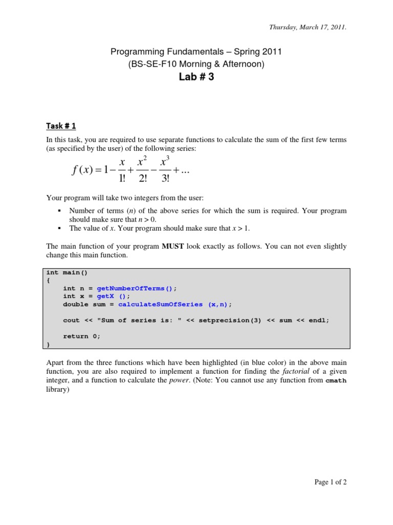 In this task, you are required to use separate functions to calculate the sum of the first few terms