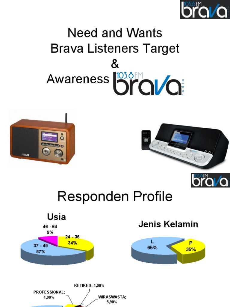 • 90% dari responden yang mendengarkan Brava Radio mengetahui bahwa 103.8 Brava Radio.