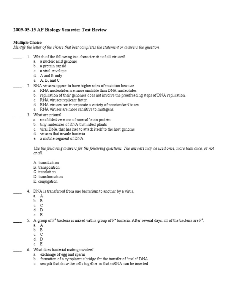 ____ 15. Which of the following must exist in a population before natural selection can act upon that population?
