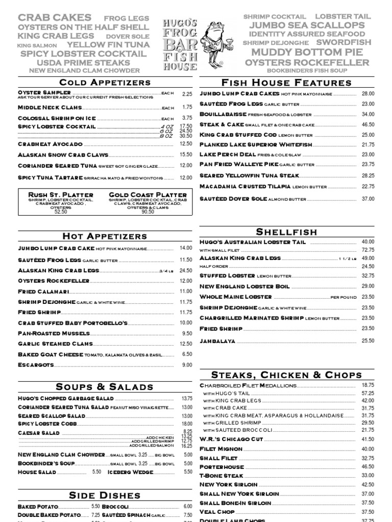 CRAB CAKES FROG LEGS SHRIMP COCKTAIL LOBSTER TAIL