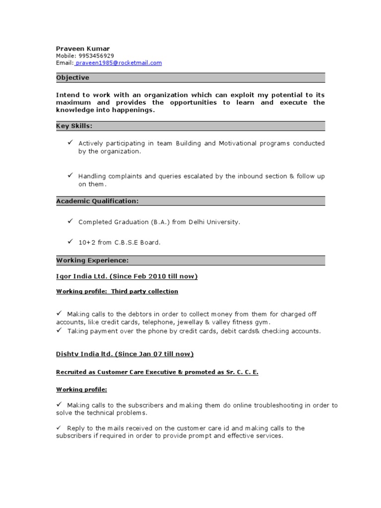 Recruited as Customer Care Executive & promoted as Sr. C. C. E.