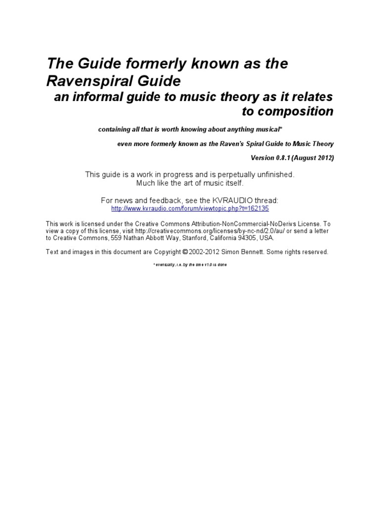 containing all that is worth knowing about anything musical* formerly known as the Raven's Spiral Guide to Music Theory Version 0.6 (13 May 2007) Latest version kept at http://www.ravenspiral.com/ravenspiralguide.pdf
