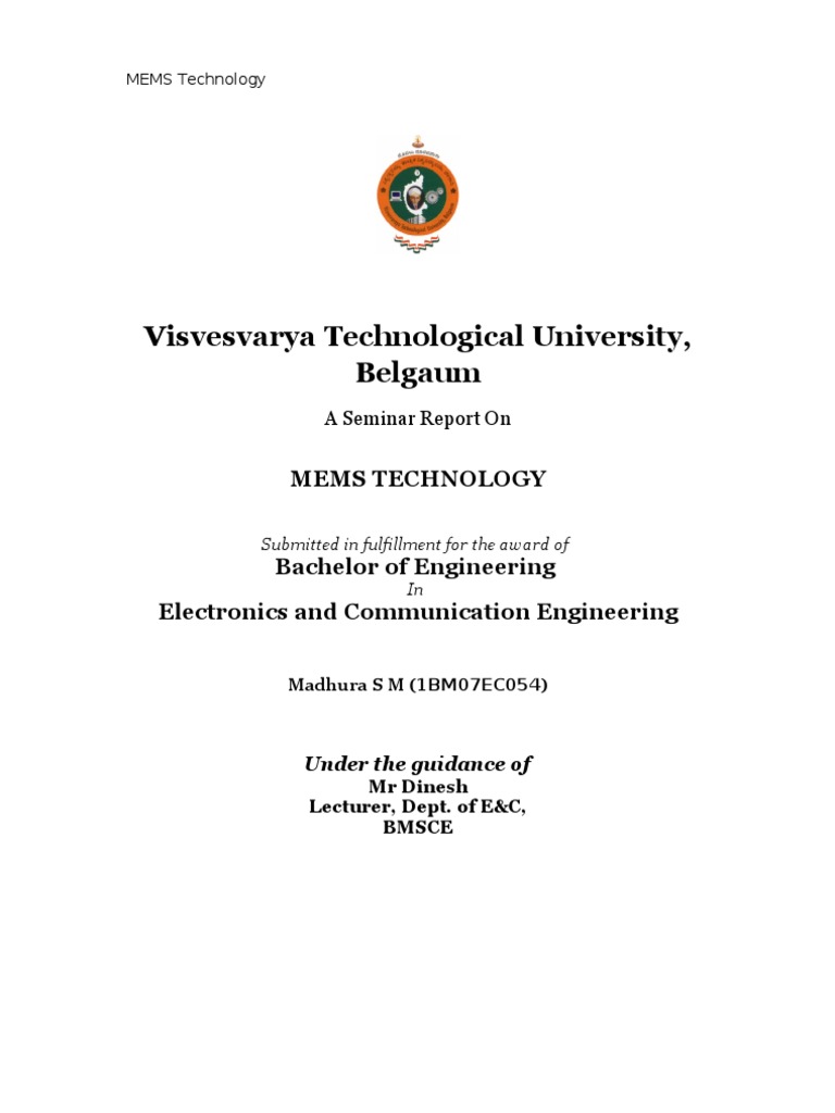 preliminary stage. A thorough understanding of the properties of existing MEMS
