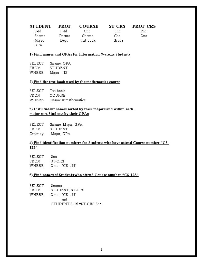 FROM STUDENT, ST-CRS, COURSE, PROF, PROF-CRS