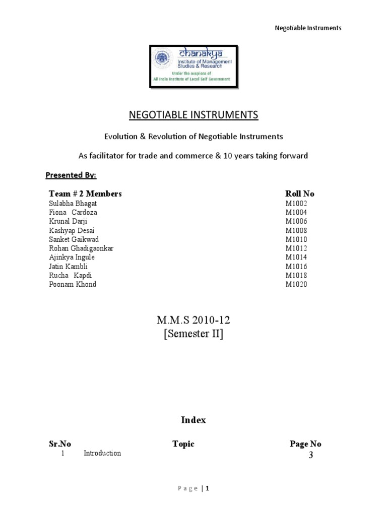 Evolution & Revolution of Negotiable Instruments