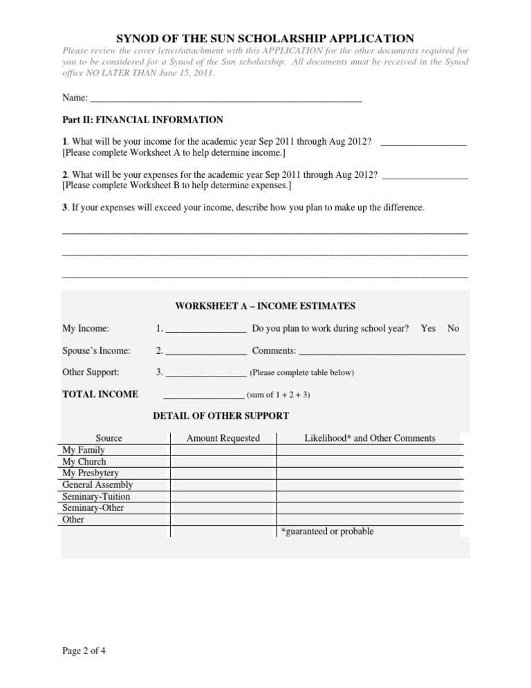 you to be considered for a Synod of the Sun scholarship. All documents must be received in the Synod