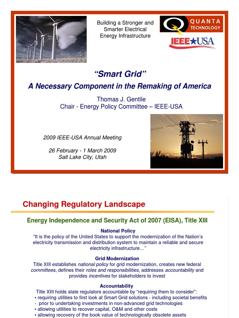 Title XIII establishes national policy for grid modernization, creates new federal