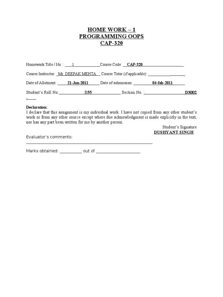 Homework Title / No. : ___ 1_____________Course Code: __CAP-320 _