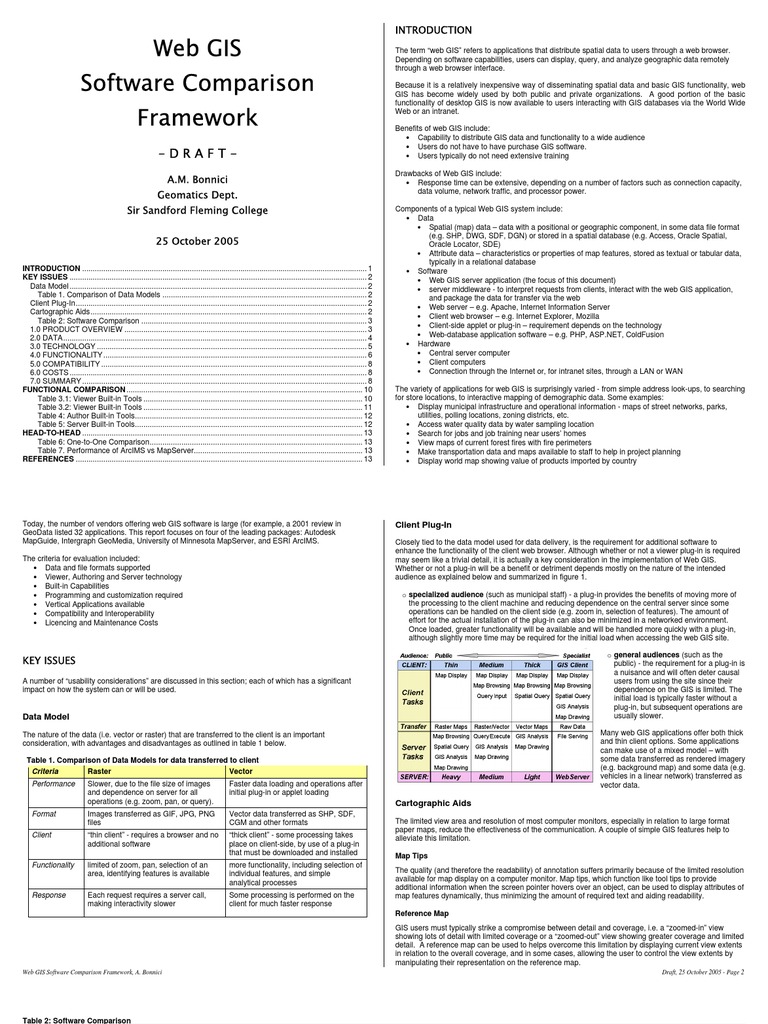 Web GIS Software Comparison Framework, A. Bonnici Draft, 25 October 2005 - Page 2