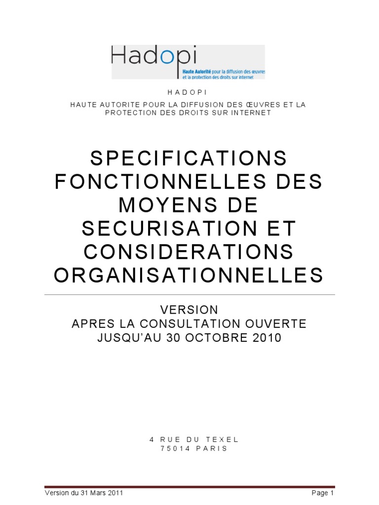 Spécifications Fonctionnelles Des Moyens de Sécurisation