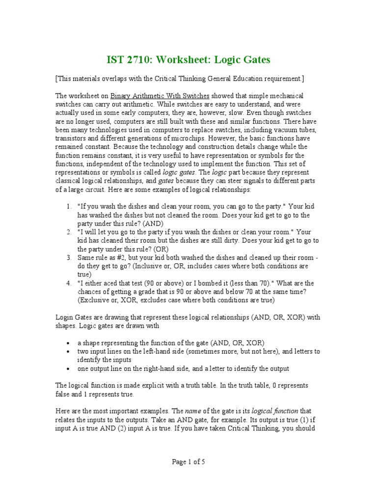 Logic Gates Worksheet