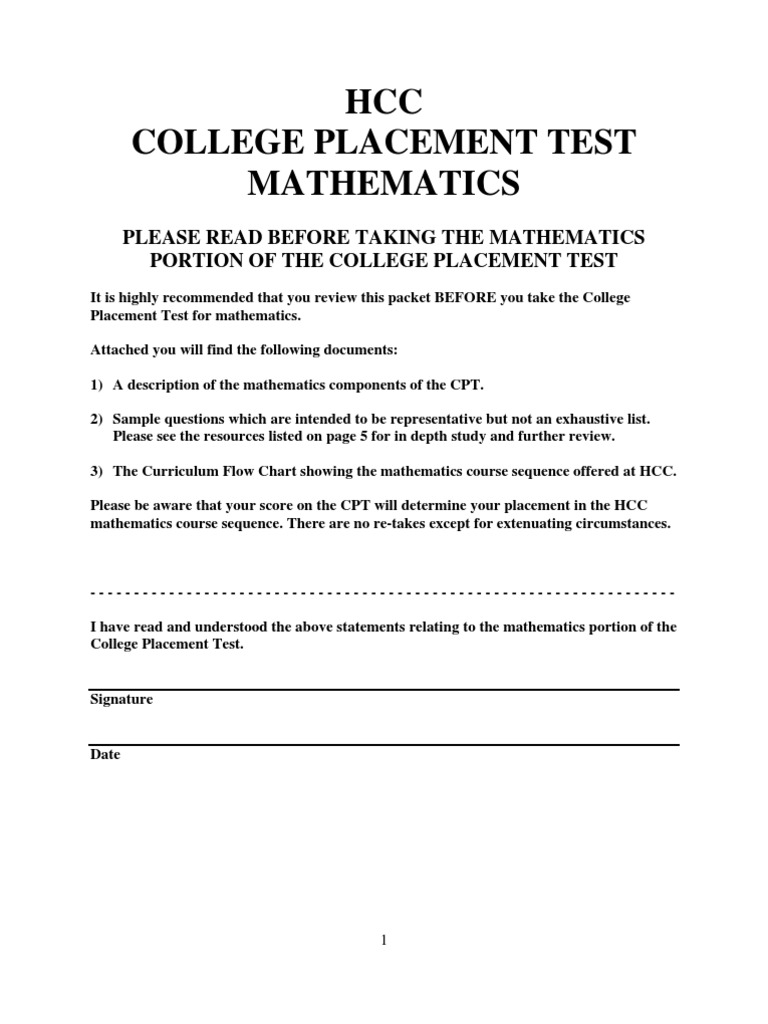 Please be aware that your score on the CPT will determine your placement in the HCC