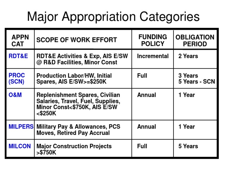 APPN SCOPE OF WORK EFFORT FUNDING OBLIGATION