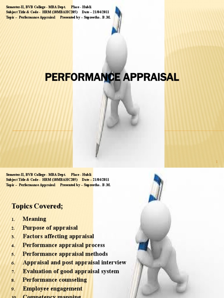 Topic – Performance Appraisal Presented by – Supreetha . B .M.