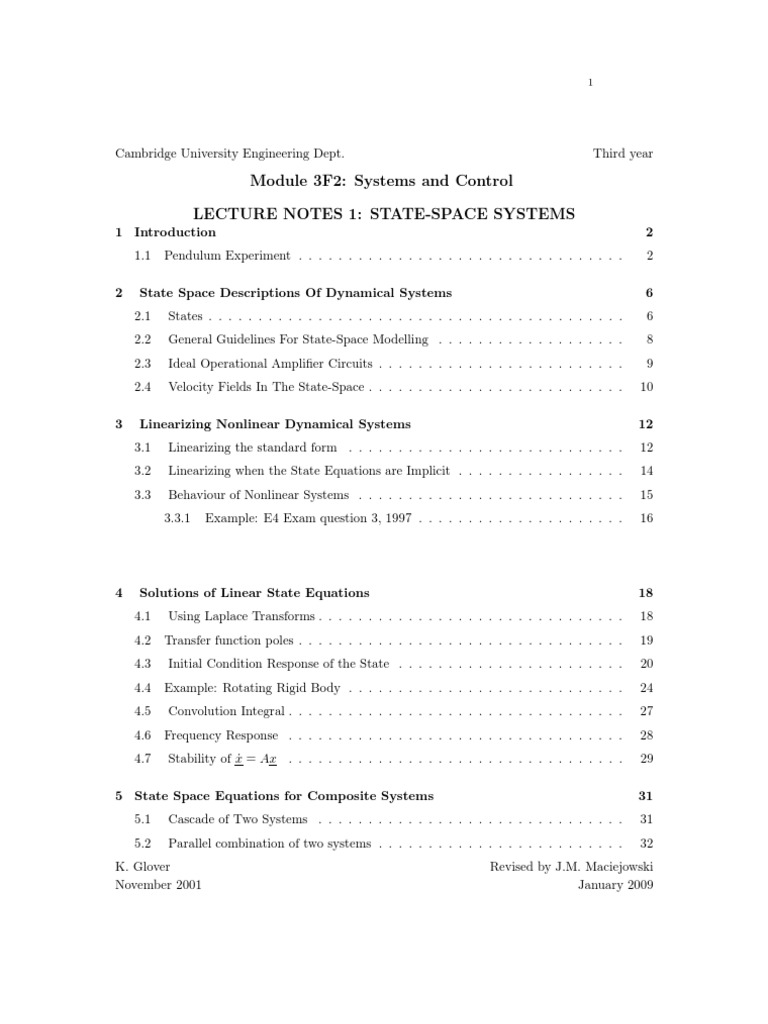 be determined from x(to ) and u(τ ), to ≤ τ ≤ t1 . [NB this is the definition of system state] That