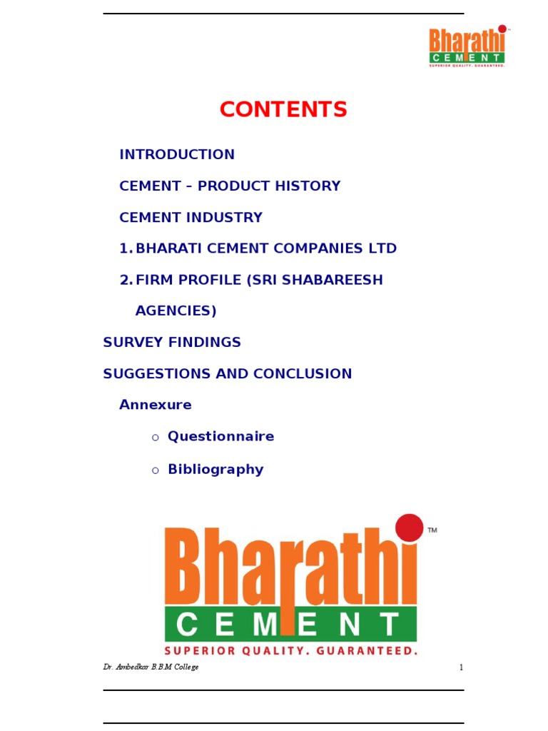 marketing share of Bharathi cement. It also deals with a