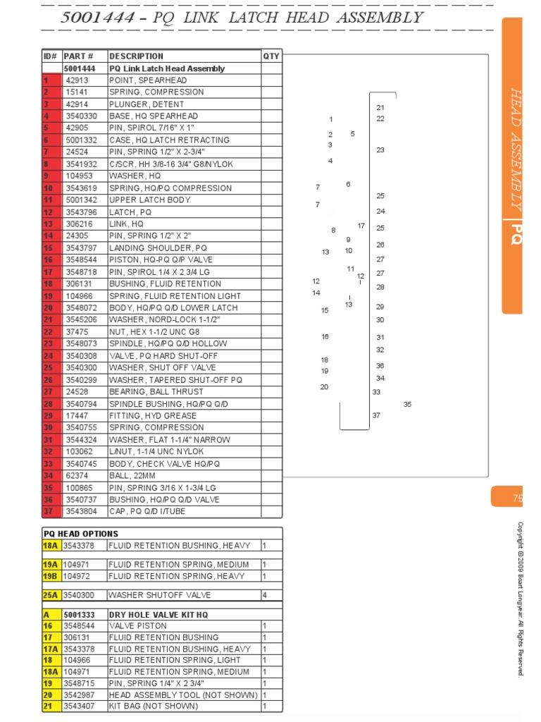 PQ HEAD OPTIONS Copyright © 2009 Boart Longyear. All Rights Reserved.