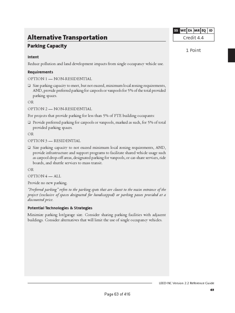 The intent of this credit is to limit availabil- trance and excluding handicapped spaces,