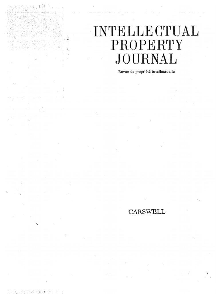 Published in September, 1999 in the journal Cahiers de propritré incellectuelle.10 INTELLECTUAL PROPERTY JOURNAL [14 LP.., December 1999]