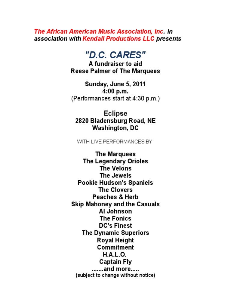School (Class of '56), sang in the D.C. Tones, The Marquees