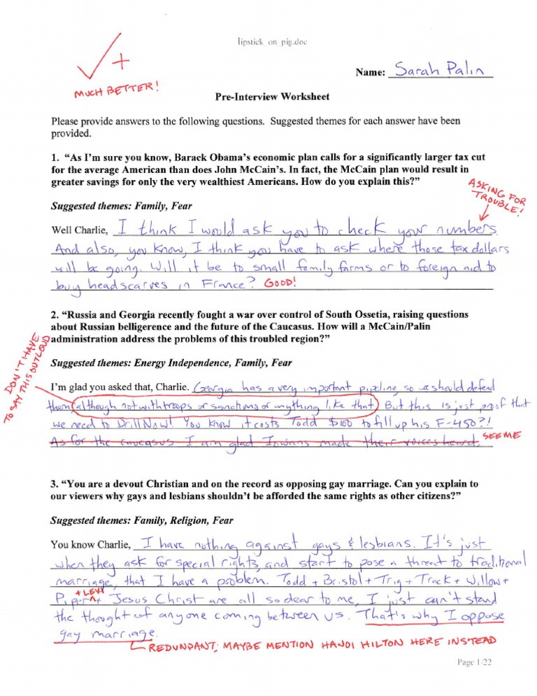 Sarah Palin's pre-Charlie-Gibson-interview Worksheet