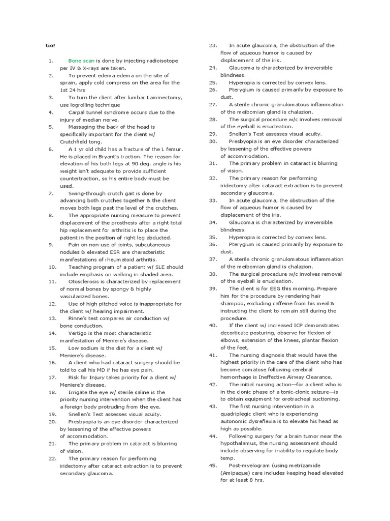 34. To test visual acuity, the nurse should ask the 49. Purpura is a purple discoloration of the skin that’s