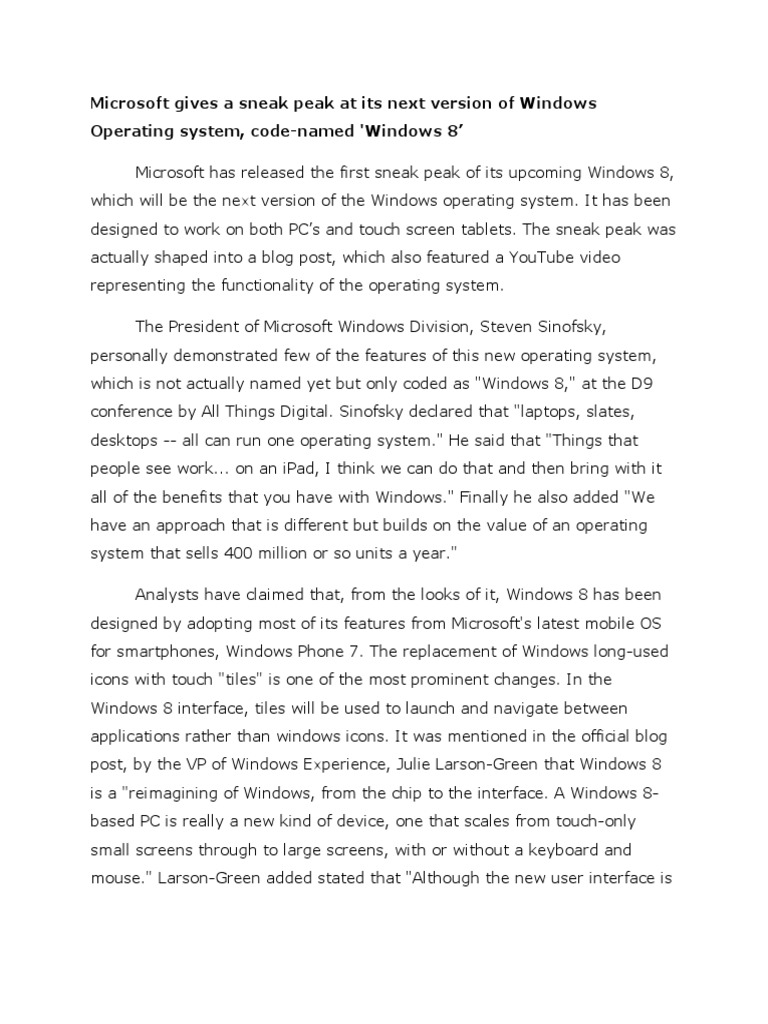 personally demonstrated few of the features of this new operating system,