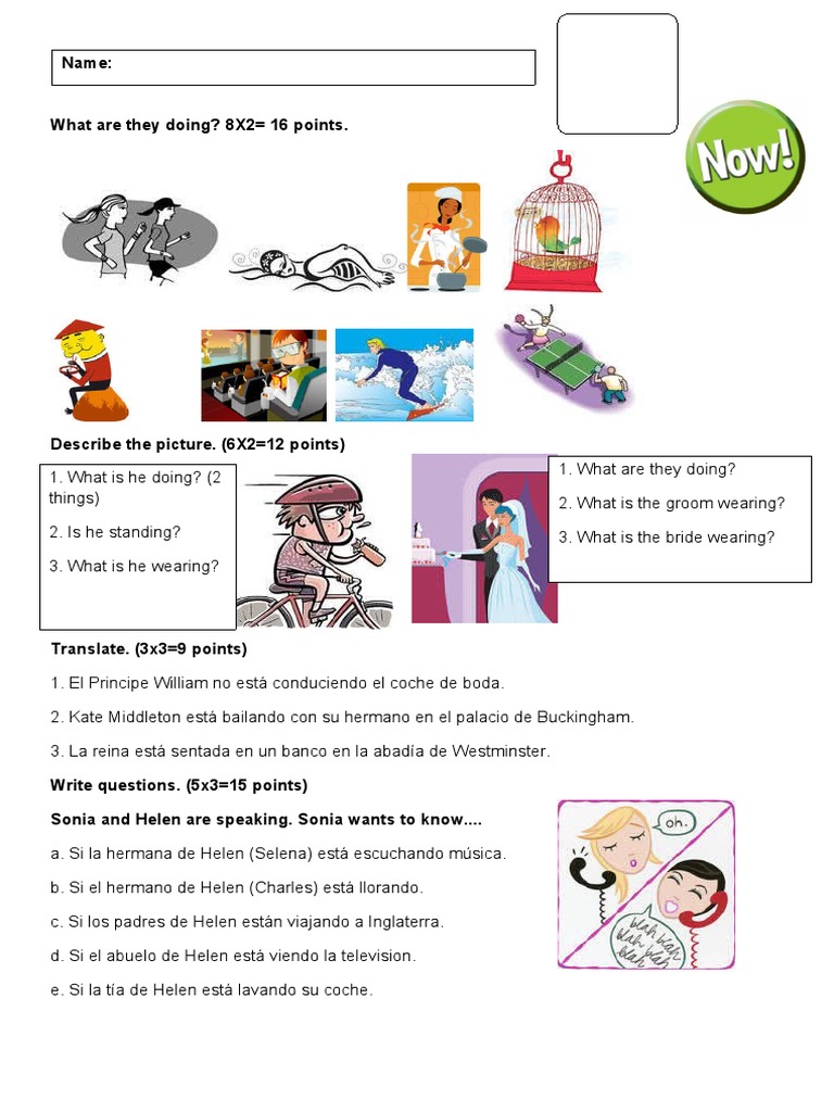 4. Write questions. (5x3=15 points) Sonia and Helen are speaking. Helen asks...