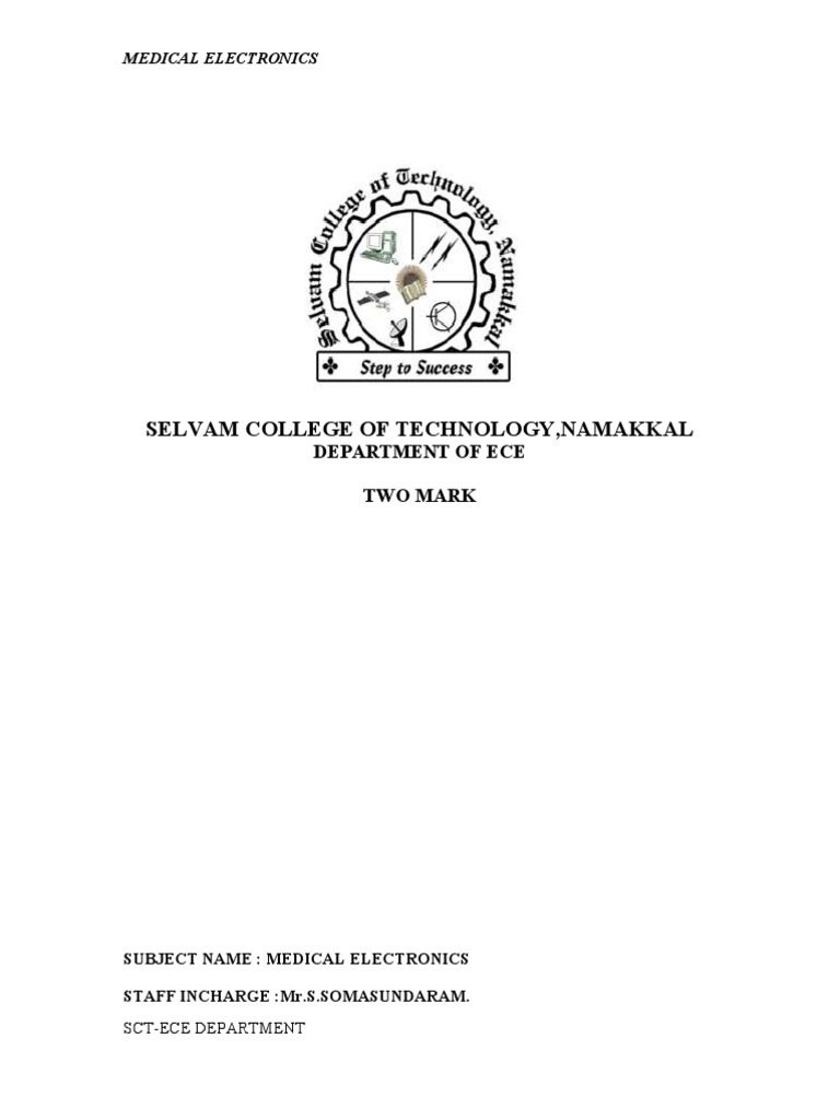 SUBJECT NAME : MEDICAL ELECTRONICS STAFF INCHARGE :[Link]. SCT-ECE DEPARTMENT