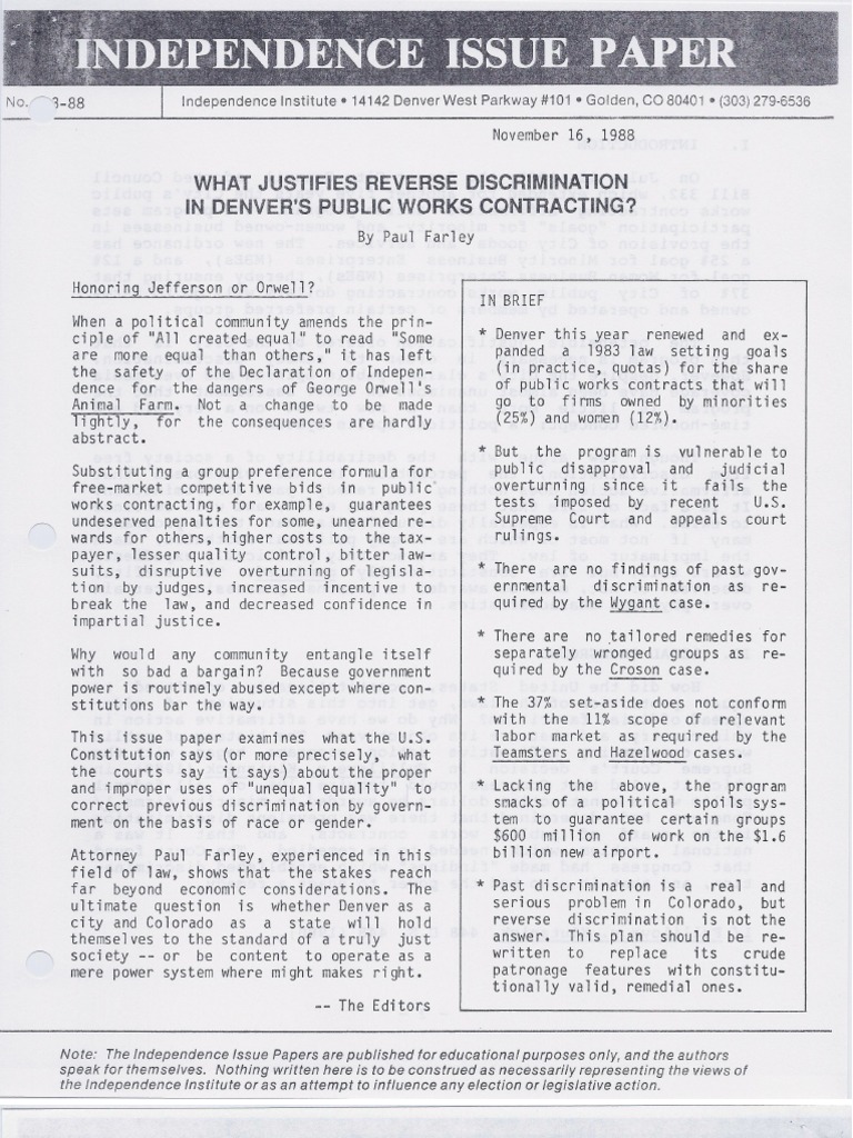 IP 23 88 What Justifies Reverse Discrimination in Denvers Public Works Contracting