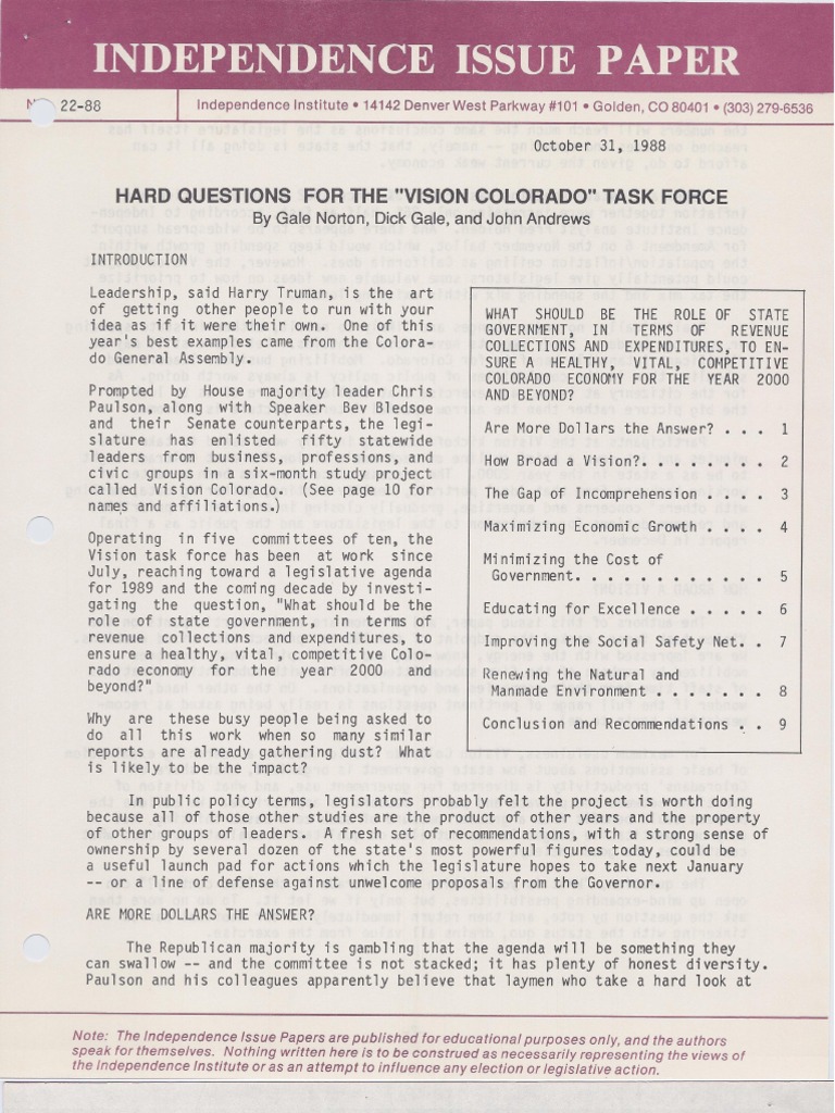 Save Hard Questions for the Vision Colorado Task Force[... For Later