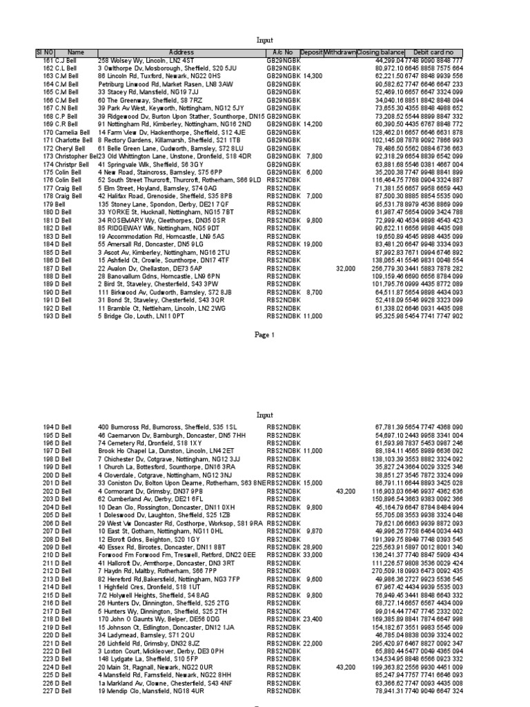 A/c No Deposit WithdrawnClosing balance Debit card no