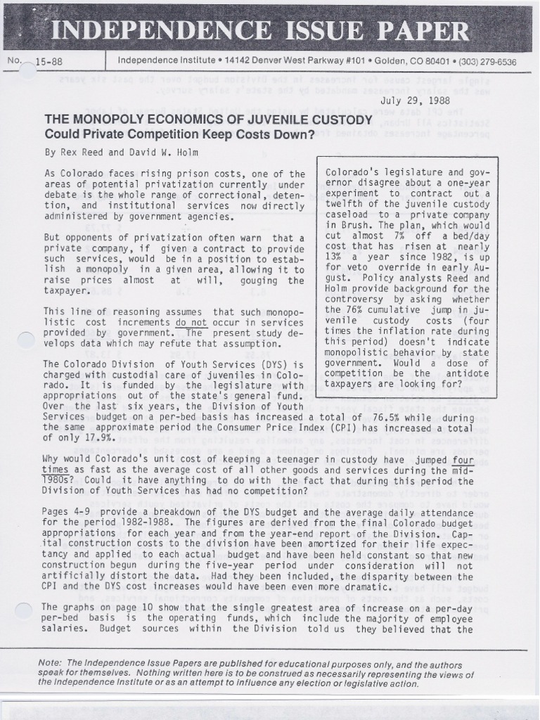 IP 15 88 The Monopoly Economics of Juvenile Custody