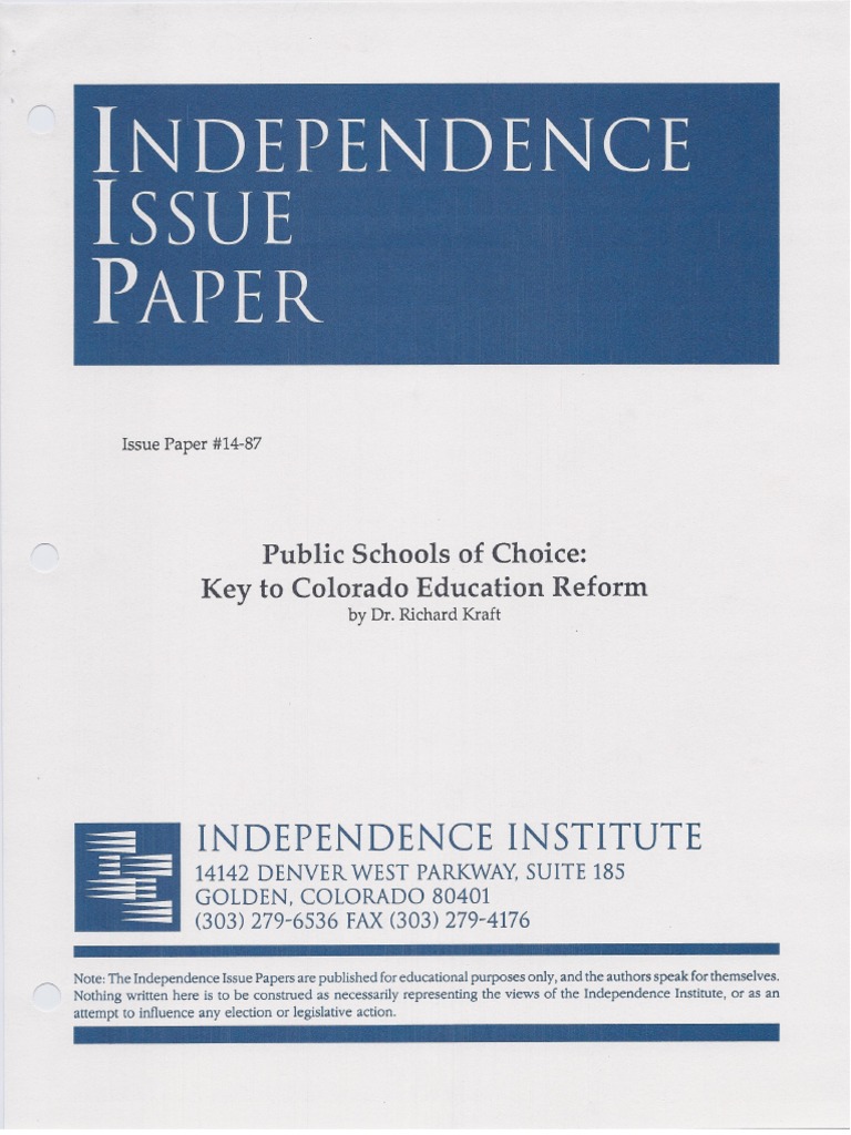 PUBLIC SCHOOLS OF CHOICE: KEY TO COLORADO EDUCATION REFORM