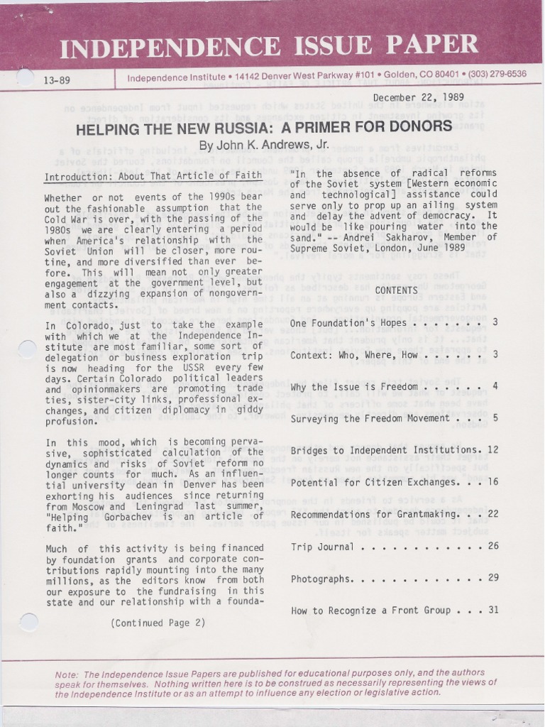 John k. Andrews, Jr.: absence of rad ica 1 aid could serve only to prop up an ailing system. He says with the passing of the 1980s, u.s.-soviet relations will be closer than ever before. Some political leaders are promoting trade ties, sister-city links, professional exchanges, he says. Writer: in this mood, sophisticated calculation of the dynamics of reform no longer counts much.