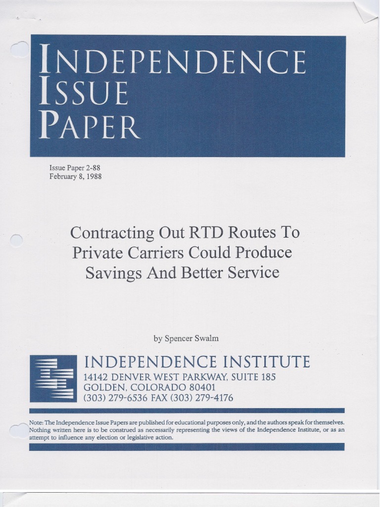 Contracting Out RTD Routes To Private Carriers Could Produce Savings and Better Service