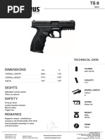 The document provides specifications for the 92 A1 model pistol, including its caliber of 9x19 IMI, magazine capacity of 17 rounds, action type of S-D (likely semi-automatic or single/double action), total length of 217mm/8.5 inches, barrel length of 125mm/4.9 inches, total thickness and height of 38mm/1.5 inches and 137mm/5.4 inches respectively, sight radius of unspecified, and unloaded weight of 945 grams/33.3 ounces.