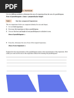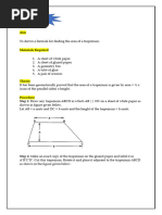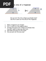 Make a trapezium out of paper. Cut it in half as in the diagram above Arrange the pieces into a shape you already know. You wont need to make any more cuts Glue down the pieces on this sheet Can you work out the area now?