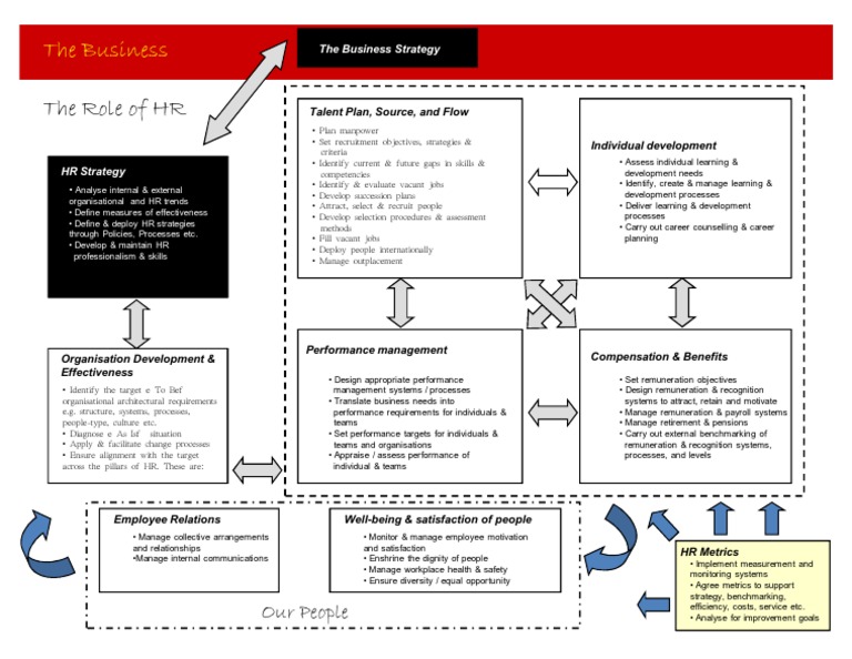 Identify the target e To Bef organisational architectural requirements e.g. structure, systems, processes, people-type, culture etc. Diagnose e As Isf situation Apply & facilitate change processes Ensure alignment with the target across the pillars of HR. These are:
