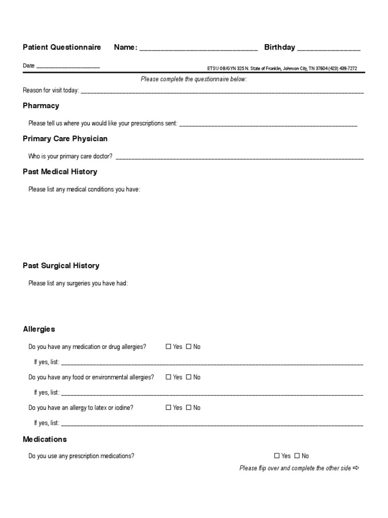 Patient Questionnaire !