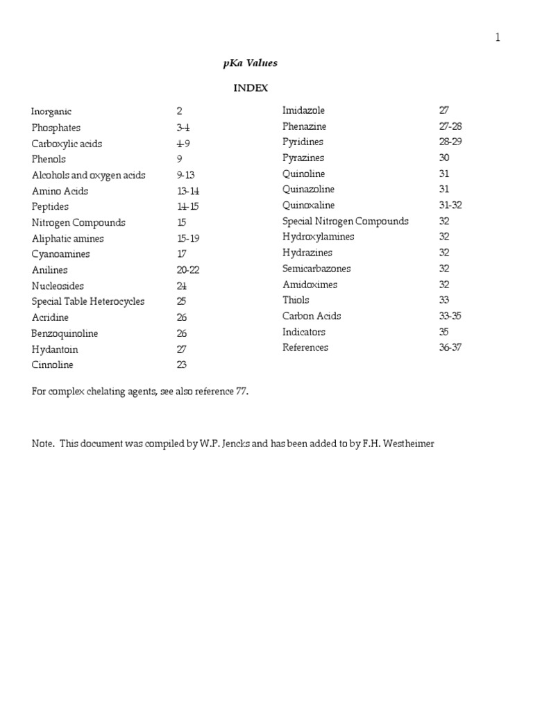 Note. This document was compiled by W.P. Jencks and has been added to by F.H. Westheimer