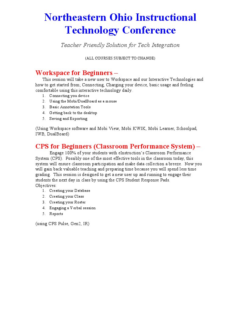 (Using ExamView, CPS, Workspace software, Mobi View, Mobi KWIK, Mobi Learner, Schoolpad, IWB, Dualboard)