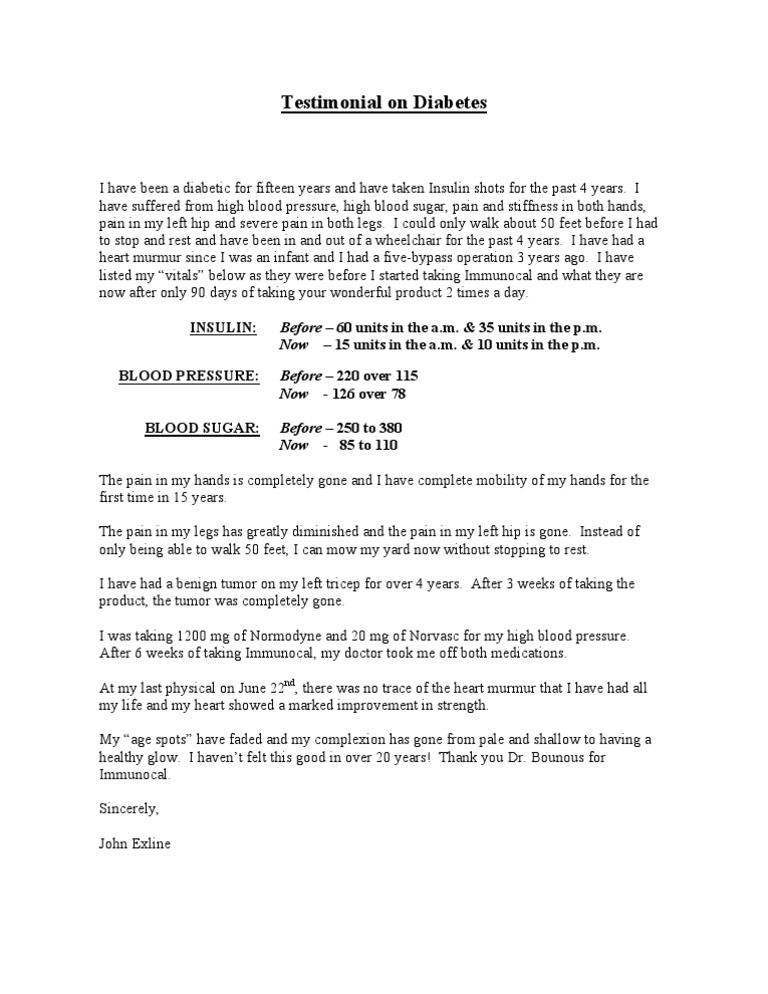 Testimonial on Diabetes